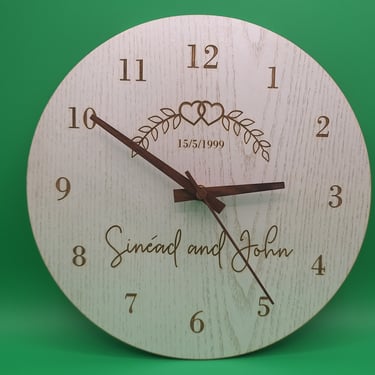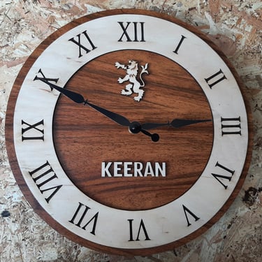 Using laser cutting and engraving techniques, I have designed and manufactured personalised clocks out of wood. These clocks are made to order based on customer requirements.